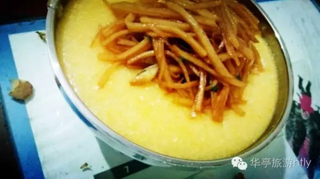 玉米糁饭和粉糊子,一热一冷,热的在寒冷的冬季吃,冷的在炎热的夏季吃,这可算华亭人的“美食之道”吧。