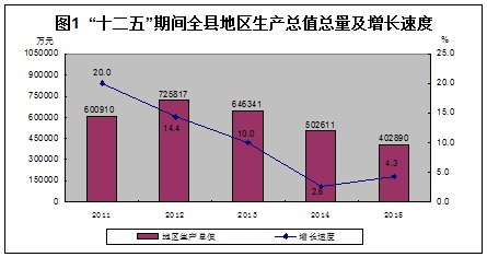 全年全县实现生产总值402890万元,比上年增长4.3%。分产业看,第一产业增加值77922万元,增长5.5%;第二产业增加值179629万元,增长2.8%;第三产业增加值145339万元,增长10.7%。