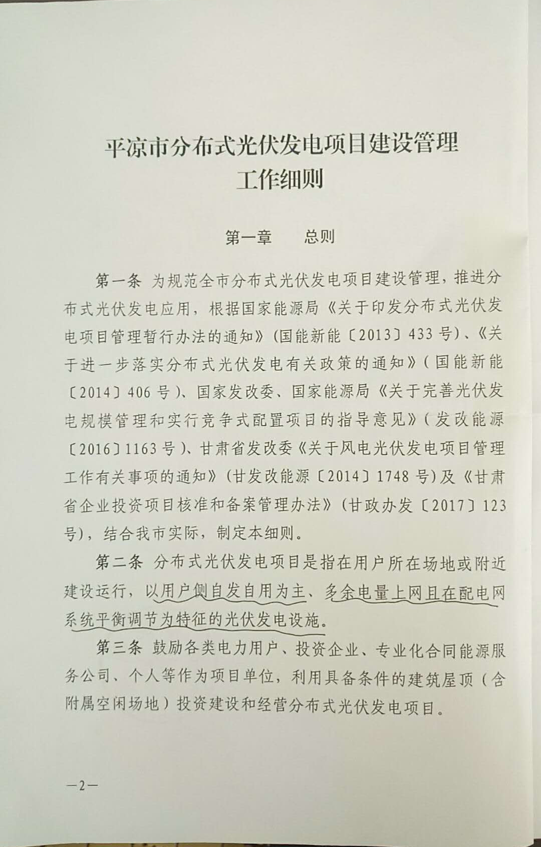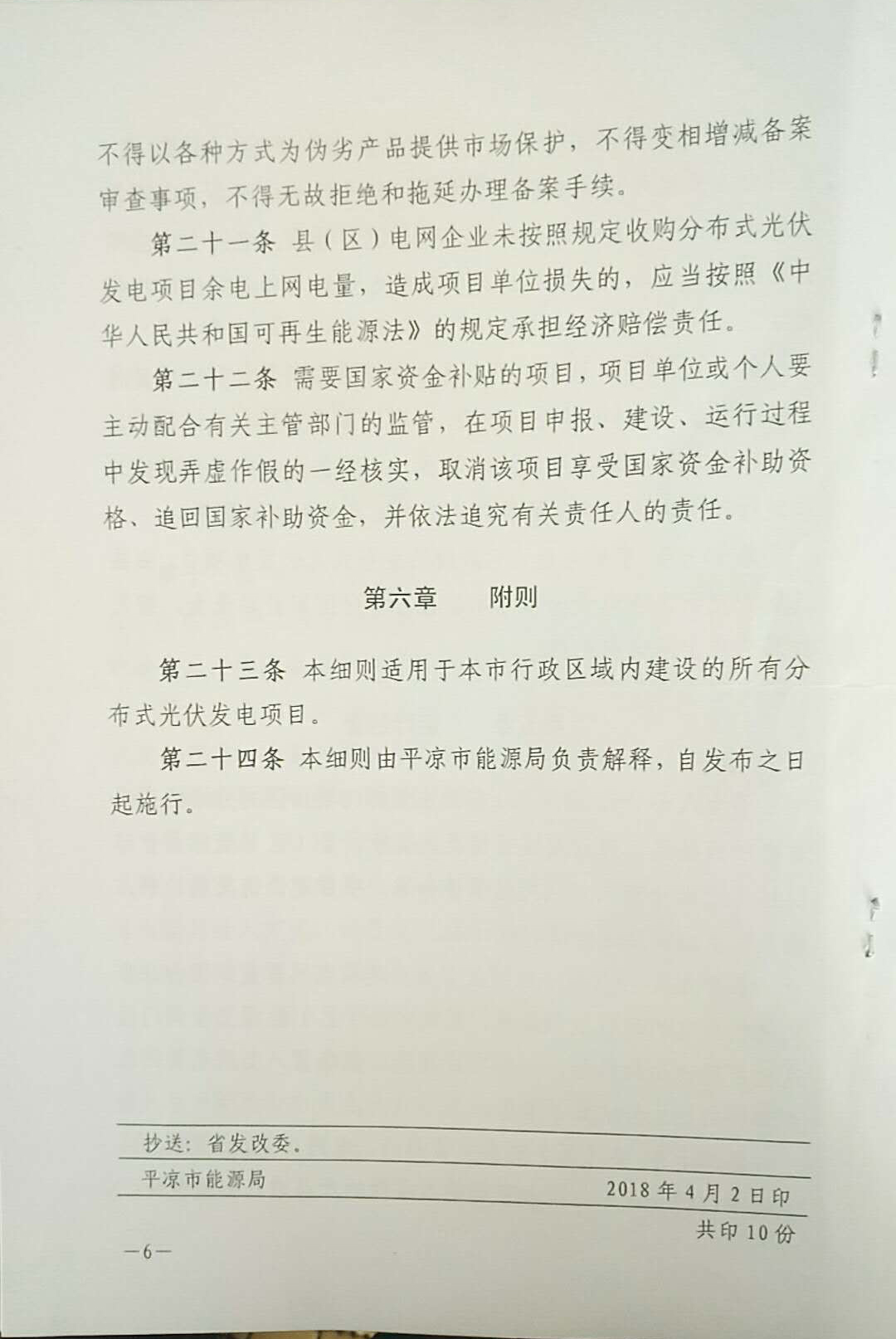 平凉市分布式光伏发电项目建设管理细则