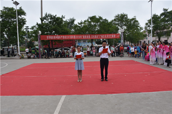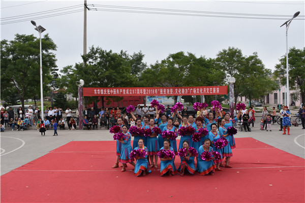 7月13日上午,东华镇在北河村文化广场上隆重举行了庆祝中国共产党成立97周年暨2018年“脱贫攻坚、文化助力”广场文化月文艺展演活动,镇领导班子成员、各村(社区)支书、主任、镇机关干部职工、演职人员及现场群众共约350余人观看了演出。